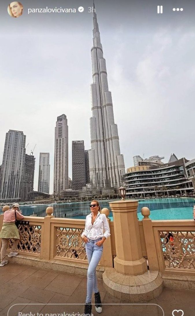 Panzalović je pozirala i ispred Burdž Kalife, najviše zgrade na svetu, dok se u pozadini vidi luksuzni pejzaž ovog glamuroznog grada.