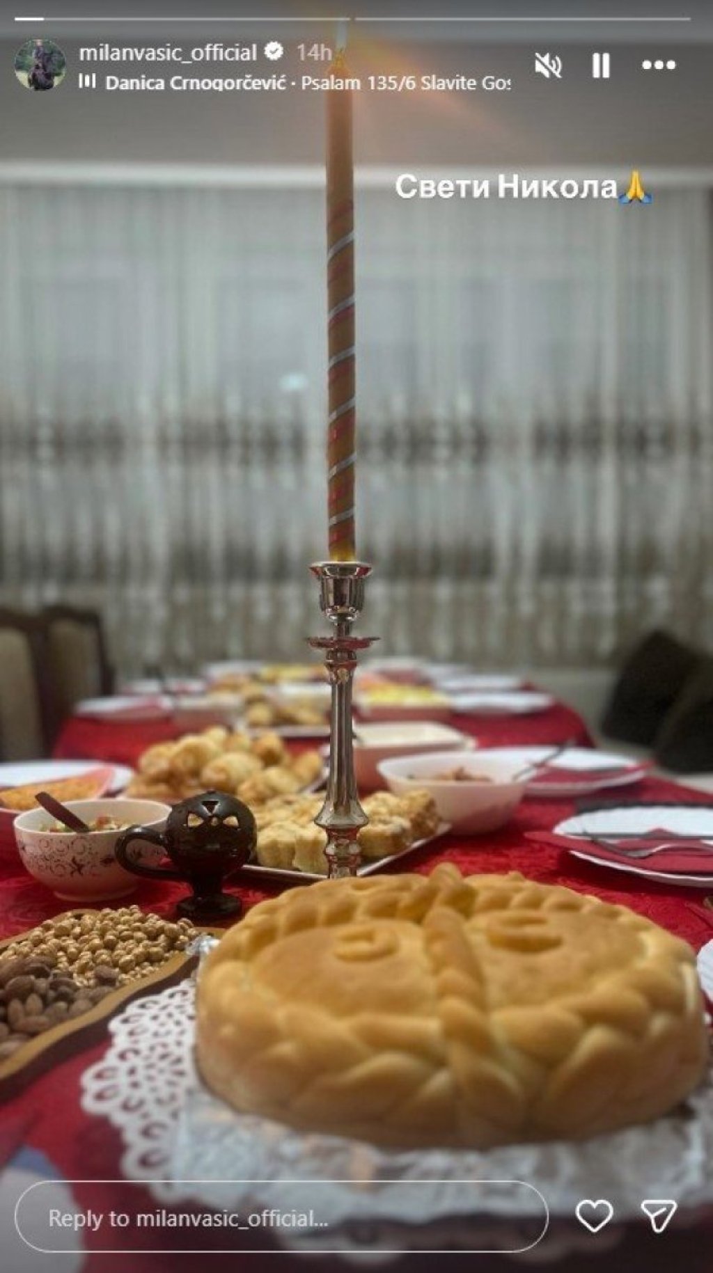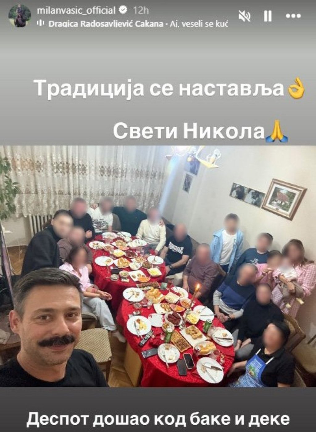 Uz fotografiju, Milan Vasić je kratko poručio: "Sveti Nikola", a potom je podelio i zajedničku fotografiju sa porodicom, sa kojom inače živi na Kosovu i Metohiji i napisao: "Tradicija se nastavlja. Sveti Nikola. Despot došao kod bake i deke."