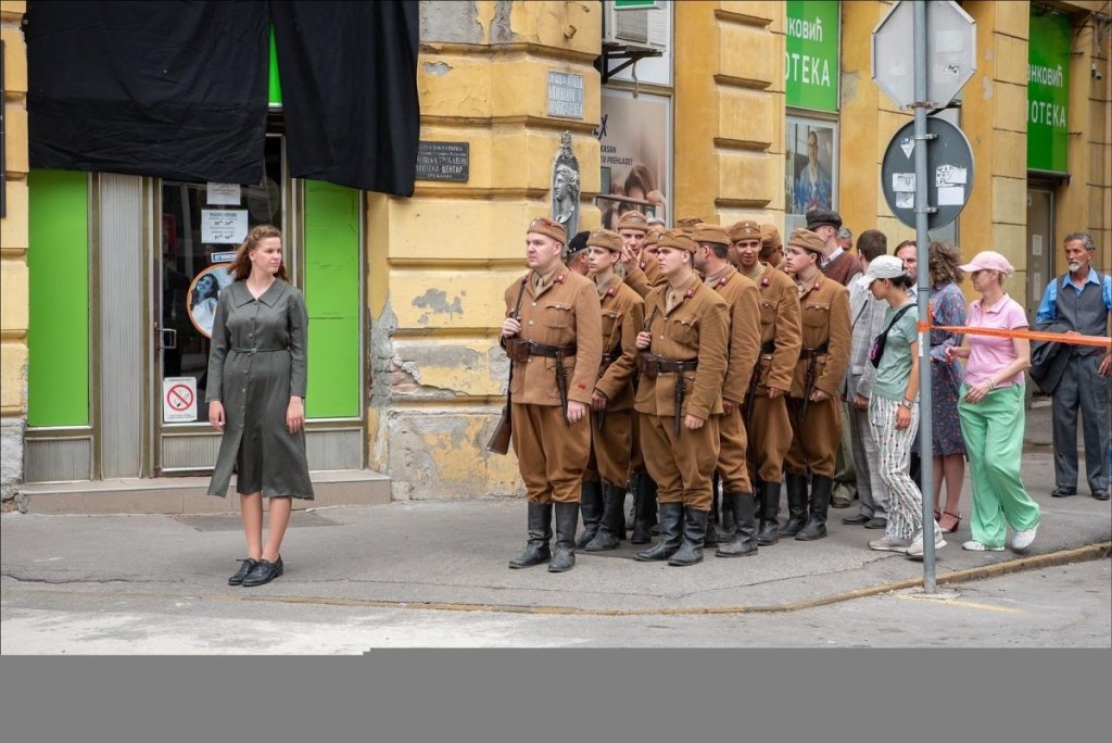 Glumci i statisti, na čelu sa rediteljem, snimali su na temperaturi od 40 stepeni na zrenjaninskom Trgu slobode, na kom je dočaran Zagreb tokom ratne 1942. godine.