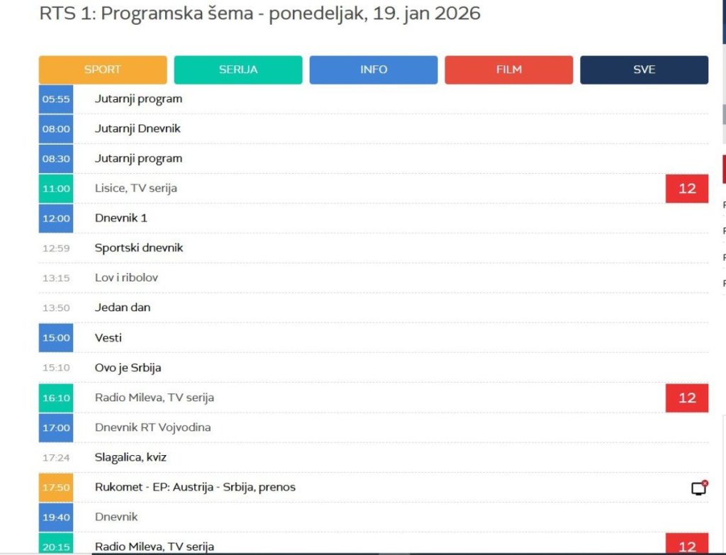 Kako je najavljeno u programskoj šemi Javnog servisa za ponedeljak 19. januar, prenos meča Srbija-Austrija emitovaće se u 17.50 sati.