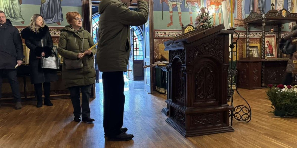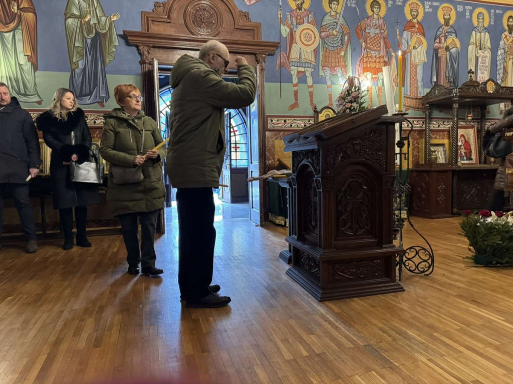 Na pokopu Miroslava Mike Aleksića peva crkveni hor.