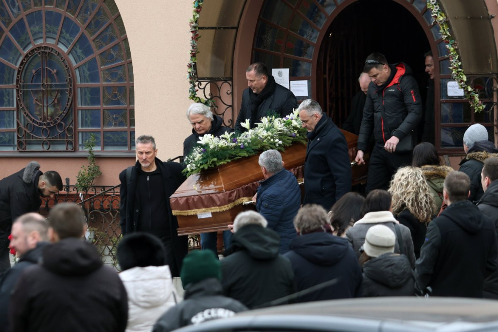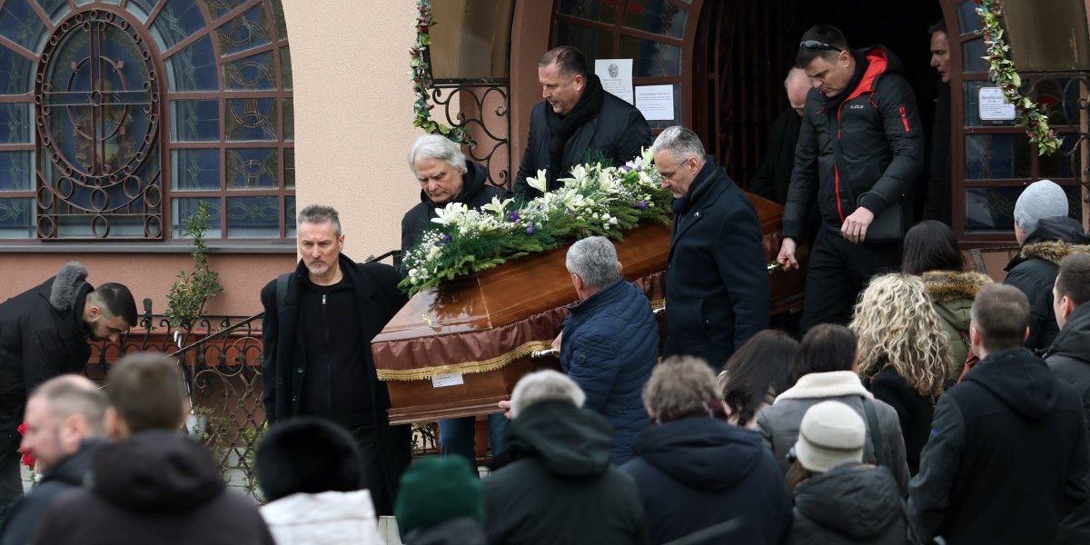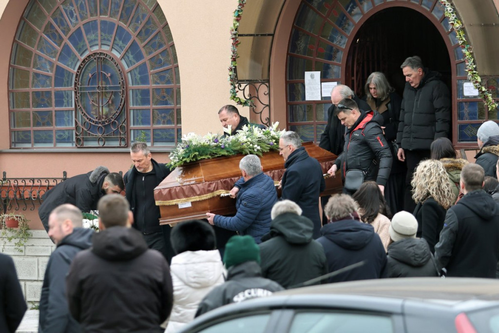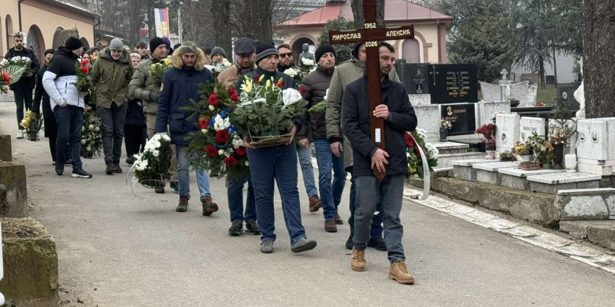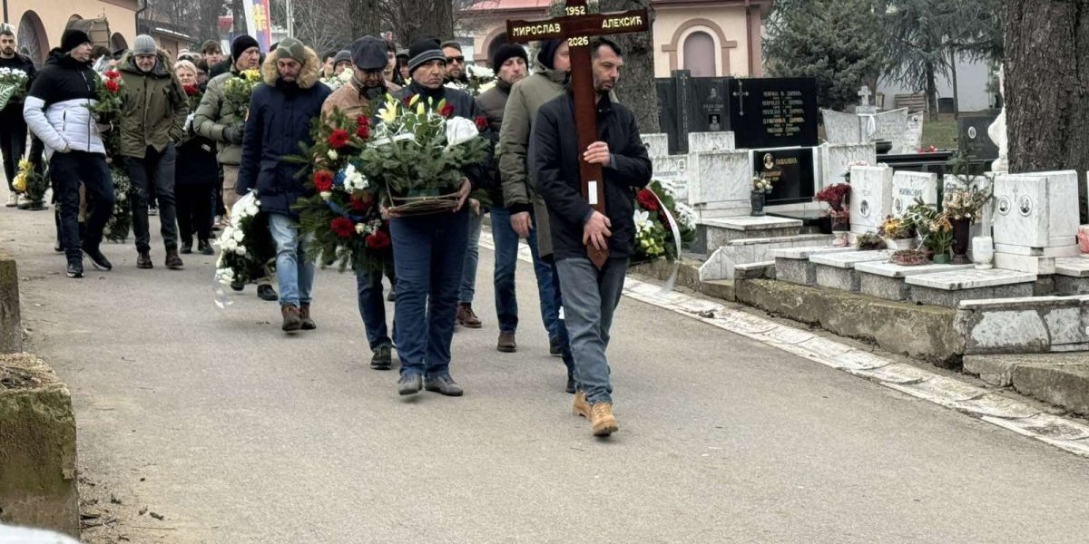 Povorka sa telom Miroslava Mike Aleksića krenula je od crkvice do njegovog groba gde će večno počivati. Njegova supruga Biljana jeca na sav glas.