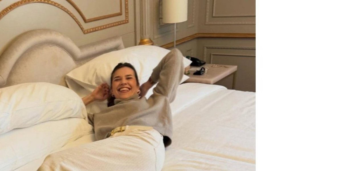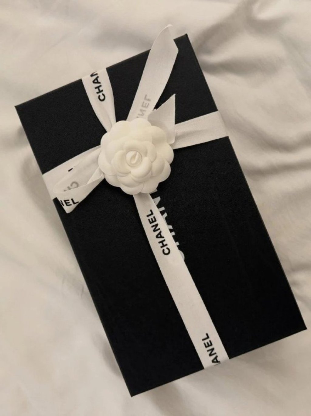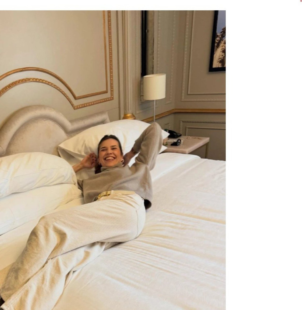 Anicu je Lazar uslikao kako nasmejana leži na krevetu u hotelskoj sobi, a potom se gumica pohvalila i elegantno upakovanim Šanel poklonom.