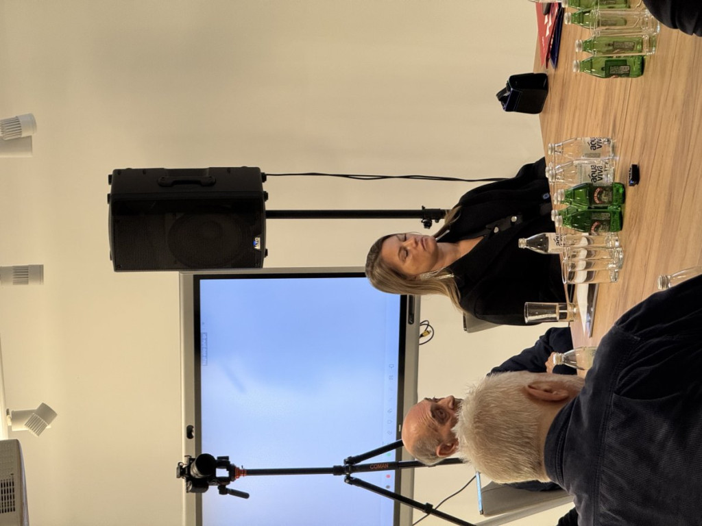 Ispred Ministarstva kulture i Filmskog centra Srbije u panel diskusiji su učestvovali gospodin Lav Grigorije Pajkić, državni sekretar, i gospodin Jakov Petrović, v.d. direktora Filmskog centra Srbije.