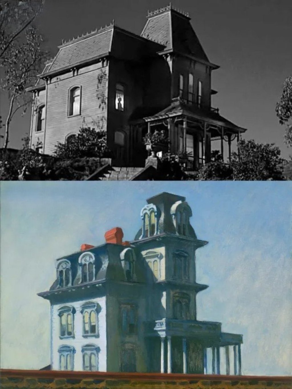Film je režirao Alfred Hičkok, majstor psihološkog trilera. Zastrašujuća kuća Normana Bejtsa vizuelno podseća na usamljenu arhitekturu sa slika Edvarda Hopera, čime se dodatno pojačava osećaj izolacije i potisnute pretnje.