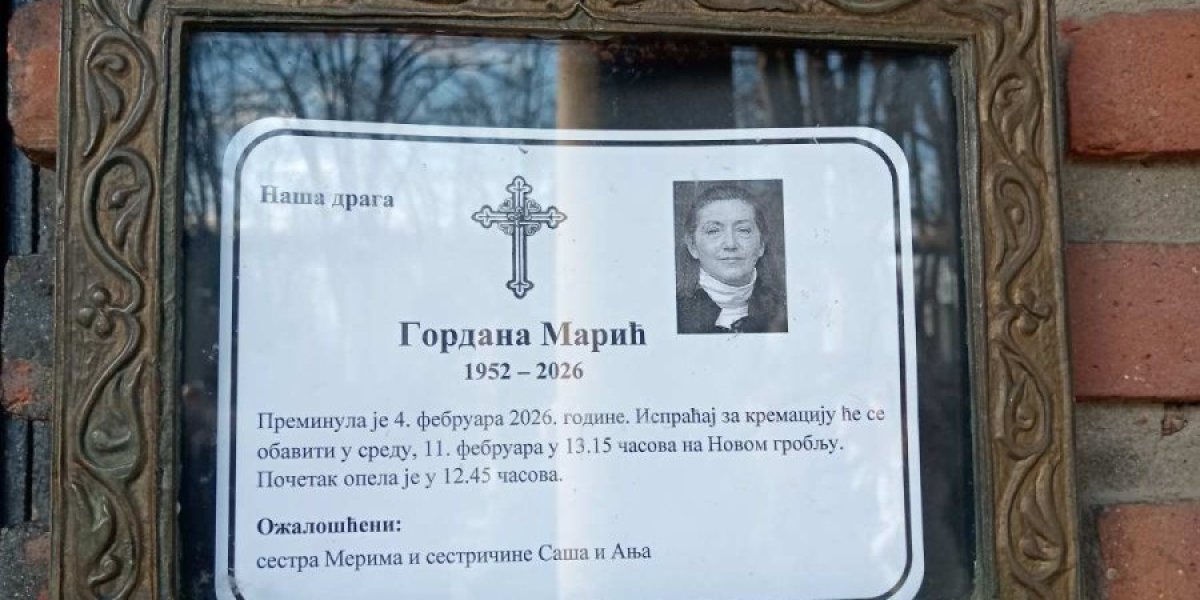 Glumica Gordana Marić kremirana je danas na Novom groblju u Beogradu.
