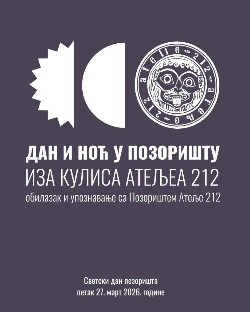 Ovo jedinstveno iskustvo će omogućiti posetiocima da zavire iza kulisa i otkriju tajne pozorišne zgrade Ateljea 212, jednog od najznačajnijih pozorišta sa ovih prostora.