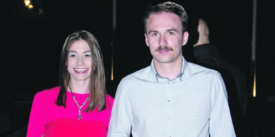 Mlada je mamila uzdahe u uskoj venčanici preko koje je nosila crveni upečatljivi komad, dok je Ivan bio u crnom odelu i beloj košulji, a sve je upotpunio leptir mašnom.