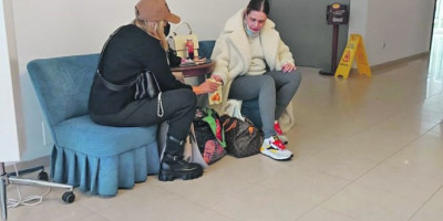 - U bolnicu je prvo ušla Anica, sa kačketom na glavi i maskom na licu, a kad je videla da nema gužve, pozvala je telefonom ćerku da joj se pridruži. Dok su čekale medicinske sestre, Anica je iz torbe izvadila sok od cvekle i suve kajsije i dala Mini.