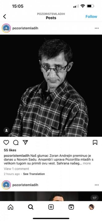 "Ansambl i uprava Pozorišta mladih s velikom tugom su primili ovu vest. Svi članovi Pozorišta mladih pamtiće ga s osmehom na licu. Komemoracija povodom smrti glumca biće organizovana 11. marta, na Maloj sceni Pozorišta mladih, od 13 sati", saopštilo je Pozorište mladih.