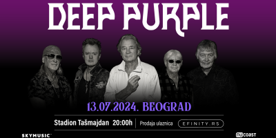 povratak rok legendi – benda Deep Purple! Antologijski hitovi - „Smoke on the water“, „Child in time“, „Hush“ i mnogi drugi, zagrmeće sa stadiona Tašmajdan 13. jula sledeće godine!