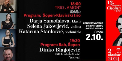 Poslednjeg dana Festivala, 7. oktobra koncert će održati pijanista Vuk Božilović (31), resitalom "Apsolutno Šopen" u novosadskoj Sinagogi.