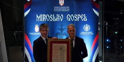 On je kao veoma važno ocenio to što predstavljajući Miroslavljevo jevanđelje - jedan od najlepših rukopisa na ćirilićnom pismu - možemo da pokažemo da pismenost kod Srba traje duže od osam vekova.