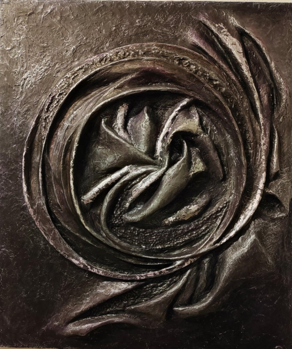 Skulpturalne reljefne slike koje istražuju dinamiku forme i boje kroz meke, rotirajuće i talasaste oblike.
