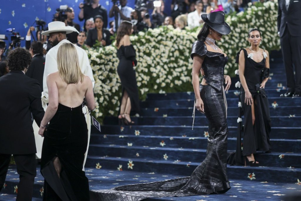 Kim Kardašijan nosila je na ceremojiji Met Gala crnu kožnu haljinu koja ističe struk i otkriva leđa pa je u jednom momentu morala da povuče odeću kako ne bi pokazala više odnosno razotkrila zadnjicu.