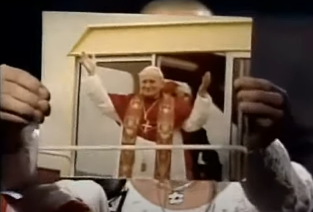 Na kraju pesme, uz reči "Borite se protiv pravog neprijatelja", podigla je fotografiju Pape i pocepala je na komade.