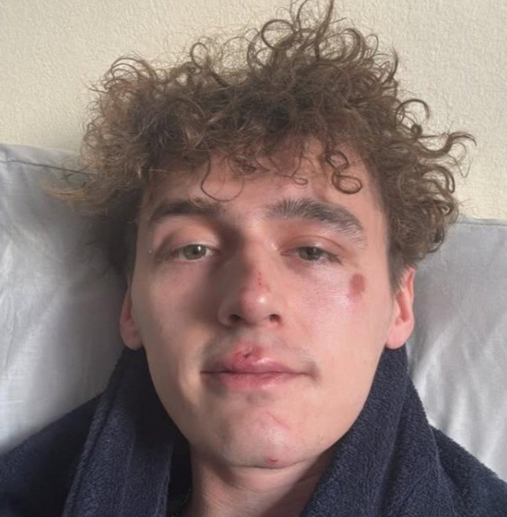 Na Instagramu je podelio dve potresne fotografije. Na jednoj se vidi kako leži u krevetu sa vidljivom modricom ispod oka, dok druga prikazuje posekotine i podlive na njegovom licu.