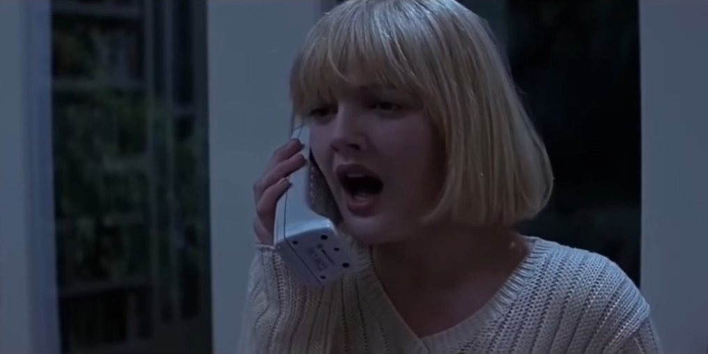 U čuvenoj uvodnoj sceni u kojoj glumica Dru Barimor kao Kejsi glumi da dobija jeziv poziv sa nepoznatog broja dok je sama u kući desio se zanimljiv incident.