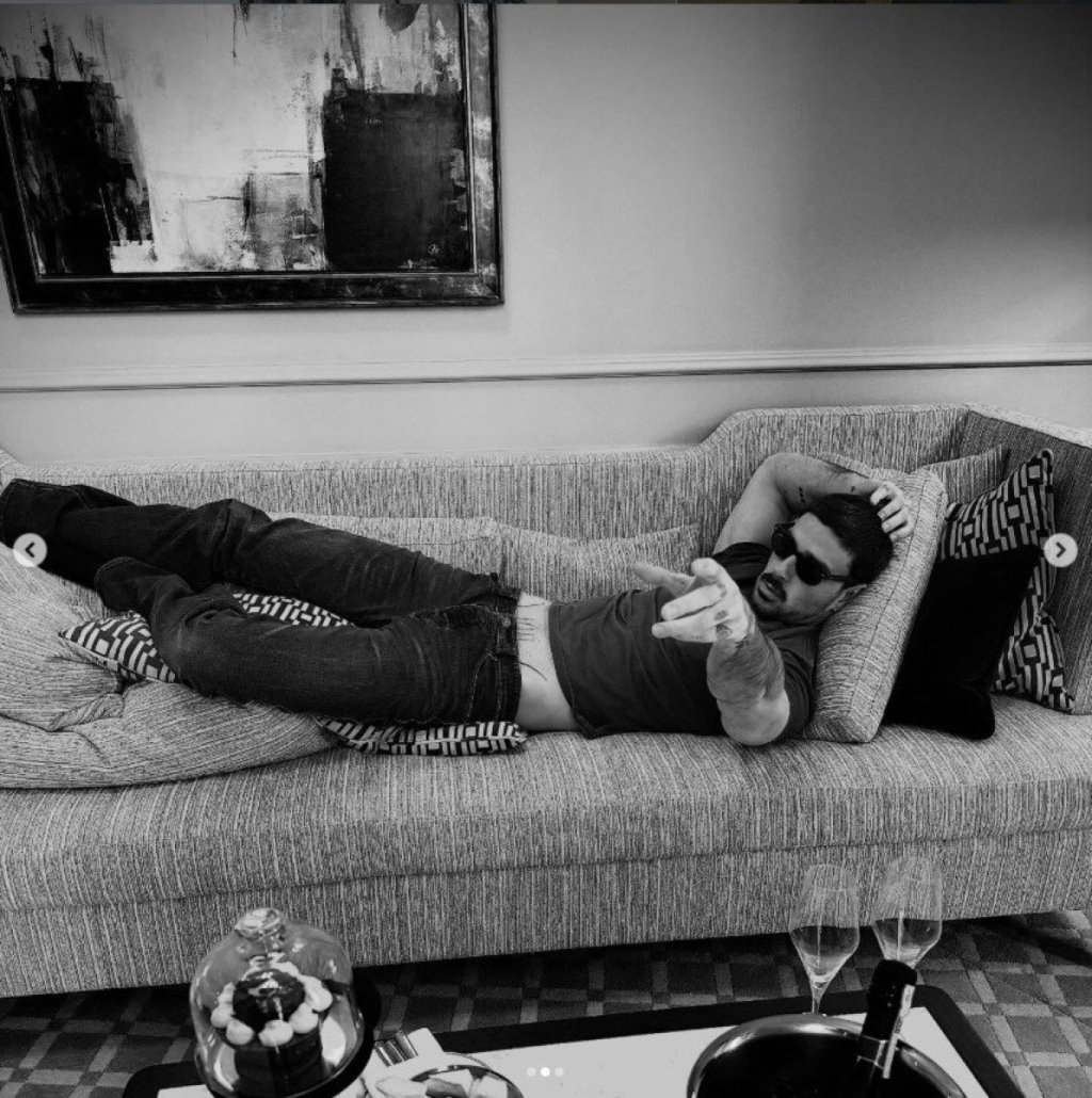 Maneken je na Instagramu objavio crno bele fotografije na kojima se vidi kako leži na kauču u farmerkama i majici koja mu otkriva stomak.