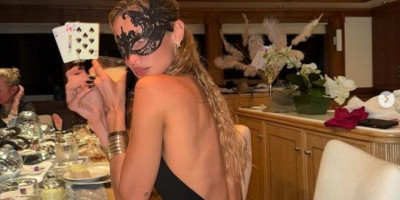 Da bi upotpunila izgled, Bela je uparila zlatne narukvice sa crnom čipkastom maskom za maskenbal.