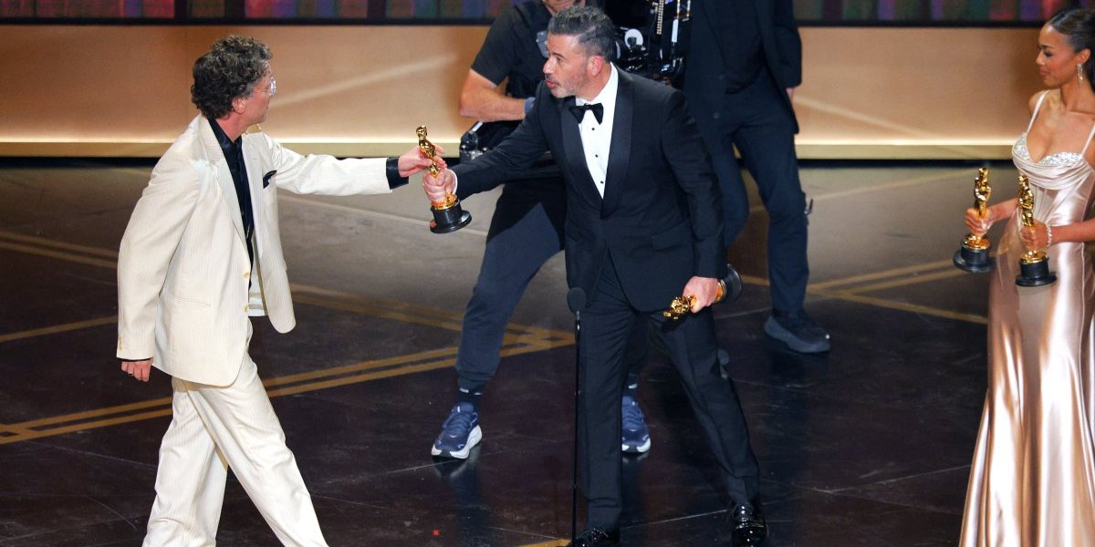 Član orekstra uzeo je gumenu zadnjicu i nasred scene udarao je reketima za stoni-tenis. Ovim se našalio sa glavnim glumcem filma "Marty Supreme" Timotijem Šalameom koji je u pomenutom ostvarenju imao sličnu scenu.