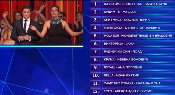 Priliku da se bori za odlazak u Izrael na „Evrosong“ imaju grupa „Majdan", Jana, Nevena Božović, Ana Popović, Dženan Lončarević i Lord.