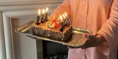 Suzana Mančić je objavila sliku sa rođendanskom tortom i svećicama koju drži u ruci, a iza nje nalazi se velika korpa sa belim ružama pored koje je i čestitka.