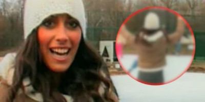 Naime, Marija je najavljivala vremenske prilike na klizaljkama uz mnogo dece koja su joj pomagala da kliza, a onda se, usred uključenja okliznula i poljubila pod.