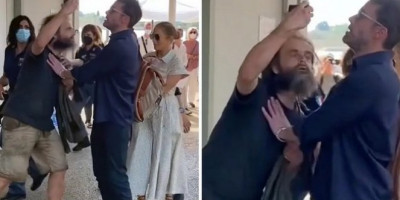Ben Aflek (49) bio je prisiljen da obuzda nasrtljivog obožavaoca na aerodromu u Veneciji koji je silno želeo da napravi selfi s glumcem i njegovom devojkom, Dženifer Lopez (52).