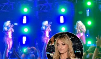Naime, pevačici je usred nastupa iz publike doleteo mobilni telefon koji ju je pogodio u glavu nakon čega je ubrzo završila na kolenima, te se rukama uhvatila za mesto udarca - malo ispod levog oka.