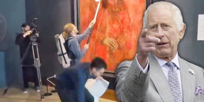 Dvojica aktivista oskrnavili su danas prvi zvanični portret kralja Čarlsa III u galeriji "Philip Mould" u Londonu.