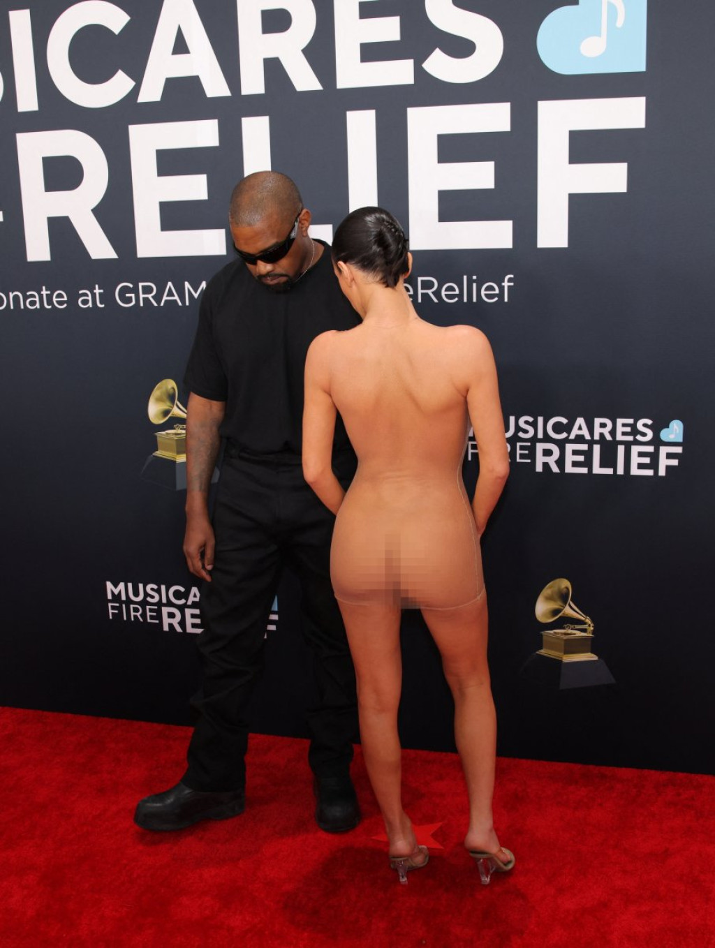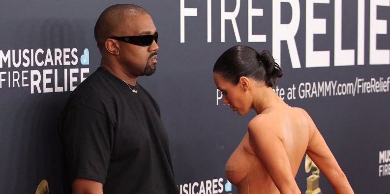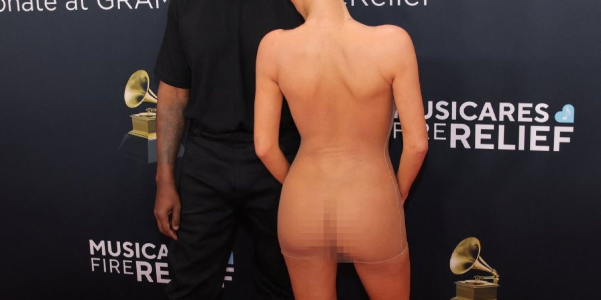 Bjanka Censori je na Gremi nagrade stigla u neprikladnoj odeći - potpuno providnoj kratkoj haljini od tila, ispod koje nije nosila ni grudnjak ni gaćice. Kada joj je Kanje šapnuo nešto na uvo, Bjanka Sensori je skinula svoj krzneni kaput i pozirala u prozirnoj haljini ispod koje nije nosila grudnjak ni gaćice. Blicevi su sevali na sve strane i niko nije mogao da veruje šta se dešava. Nakon toga, par je zamoljen da napuste dodelu nagrada.