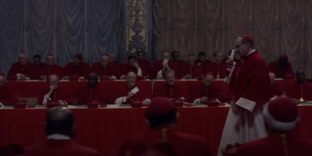 Film prikazuje tihe razgovore u vatikanskim hodnicima i suptilne političke igre iza zatvorenih vrata, koje mogu voditi ka diskvalifikaciji.