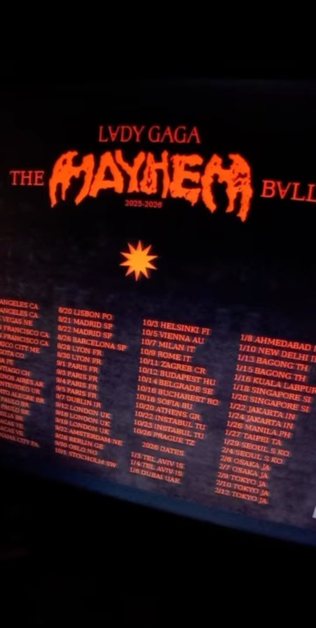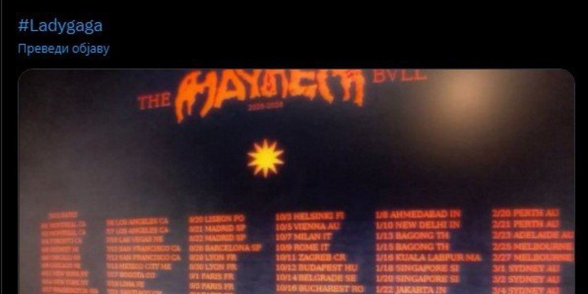 Jasno se vidi da na listi stoji Beograd i datum 14. oktobar 2025. Osim Beograda, Gaga će posetiti i prestonice u susednim državama, a među njima su i Zagreb, Bukurešt, Budimpešta i Sofija.