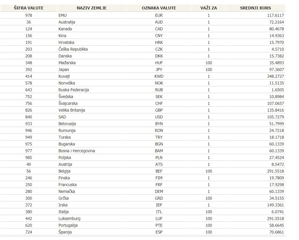 Zvanični srednji kurs dinara za evro iznosi 117,2912 dinara.