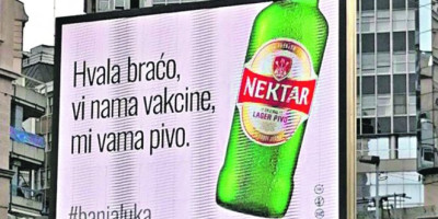 Banjalučka pivara ponovo na neumestan način reklamira svoje pivo "nektar", a pri tome i dovodi potrošače u zabludu! Naime, na brojnim bilbordima širom Beograda prethodnih nekoliko dana osvanuli su plakati na kojima piše "Hvala, braćo, vi nama vakcine, mi vama pivo".